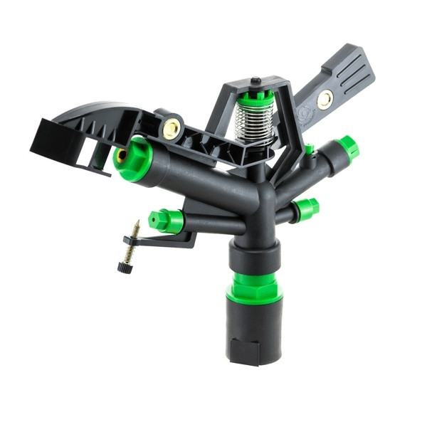Дощувач імпульсний на 5 форсунок Presto-PS (6010) використовується для зрошення ділянок великої площі, для поливу одного гектара землі їх достатньо встановити 5-6 штук залежно від форми ділянки. Оптимально підійдуть для городів, газонів і для футбольних полів. На відміну від інших видів ці зрошувачі подають воду короткими імпульсами з невеликим часовим інтервалом, вбудований маятниковий механізм розбиває струмінь на частини і створює ефект близький до природного дощу. Ця модель покриває ділянку круглої форми до 36 метрів у діаметрі, максимальна площа зрошення 1020 м?. Витрата води за тиску 5 атмосфер до 6 м?/год. Можливе під'єднання як до гнучкого садового шланга з установкою на переносну триногу, так і стаціонарне встановлення на магістральну трубу за допомогою фітингів із зовнішнім різьбленням 25 мм (1"). Рекомендований робочий тиск у системі від 3 до 5 атмосфер. Виготовлений зрошувач із високоякісного, стійкого до впливу ультрафіолетового випромінювання і добрив пластику. Під час виробництва використовуються тільки первинні матеріали.