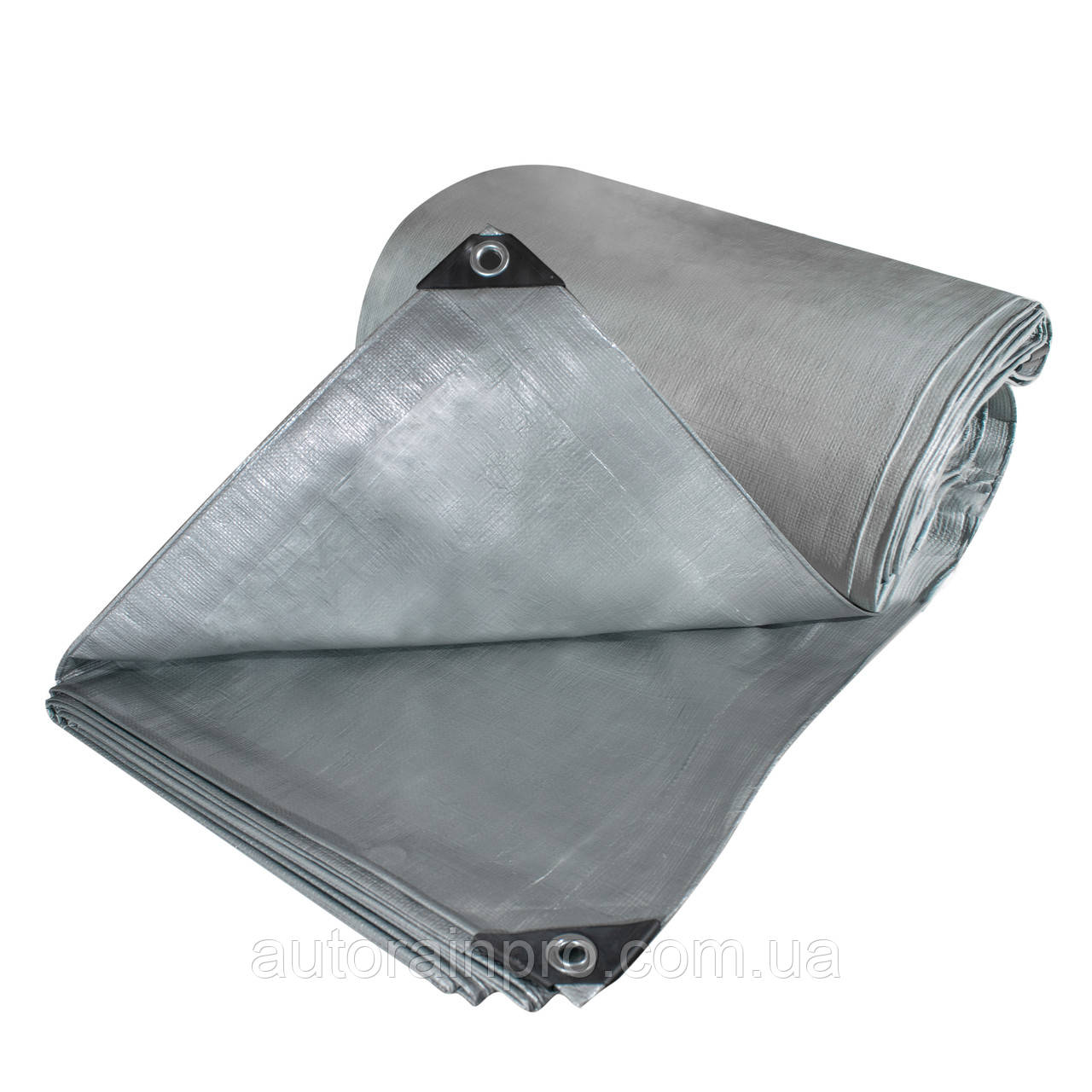 Тент представлений у сірому кольорі. Розмір полотна — 3*4 м. Подвійна клейова смуга підсилює краї тенту, а металеві люверси по периметру дають змогу використовувати шнур для закріплення.